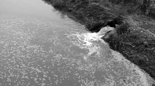 記者看到,該污水處理廠外有一直徑約半米的粗大水管向外噴吐著渾濁的白色泡沫。旁邊木坯場的盧先生笑道:“這個污水處理廠處理過的水比其他地方?jīng)]有處理的水還臟。”